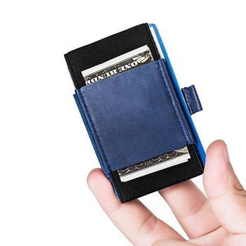 Nieuwe Stijl Minimalistische Slanke Portemonnee Elastische Voorzak Pu Lederen Creditcard Portemonnee Met Trekstang